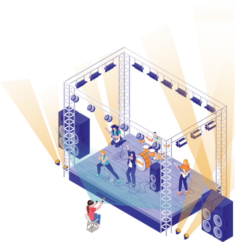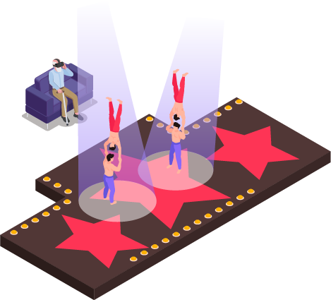 ライブ会場やスタジオでアーティストを撮影し、リアルタイムにVRコンテンツを配信、HMD(ヘッドマウントディスプレイ)や、スマホ・タブレットで視聴することが出来る技術です。